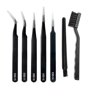 SCHOFIC 7 Pcs ESD Anti-Static Tool Tweezers Set, Made of Stainless Steel With ESD Brush - Black